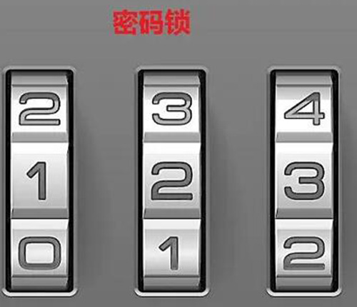 第一个方法:首先我们要往开关的反方向用力的推动密码锁,把手电筒打开照射里面的缝隙处,接着要转动密码盘和凹槽,需要根据观察来转动。接着我们要找到凹槽并且记录下密码的数字,一共三个密码盘所以有三个数字,然后我们要对得到的数字进行处理,如果数字小于5的话,那么要加上5,如果数字大于5的话要加上5,这样就可以得到密码锁的密码了。